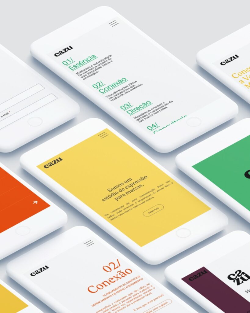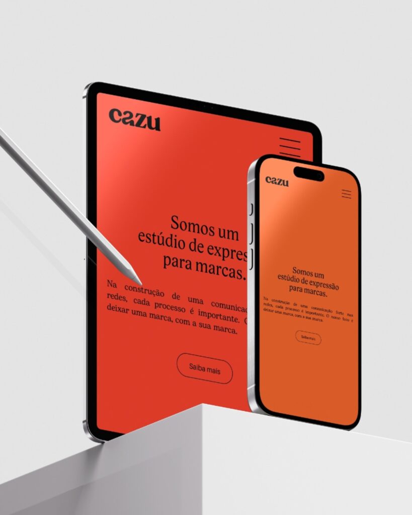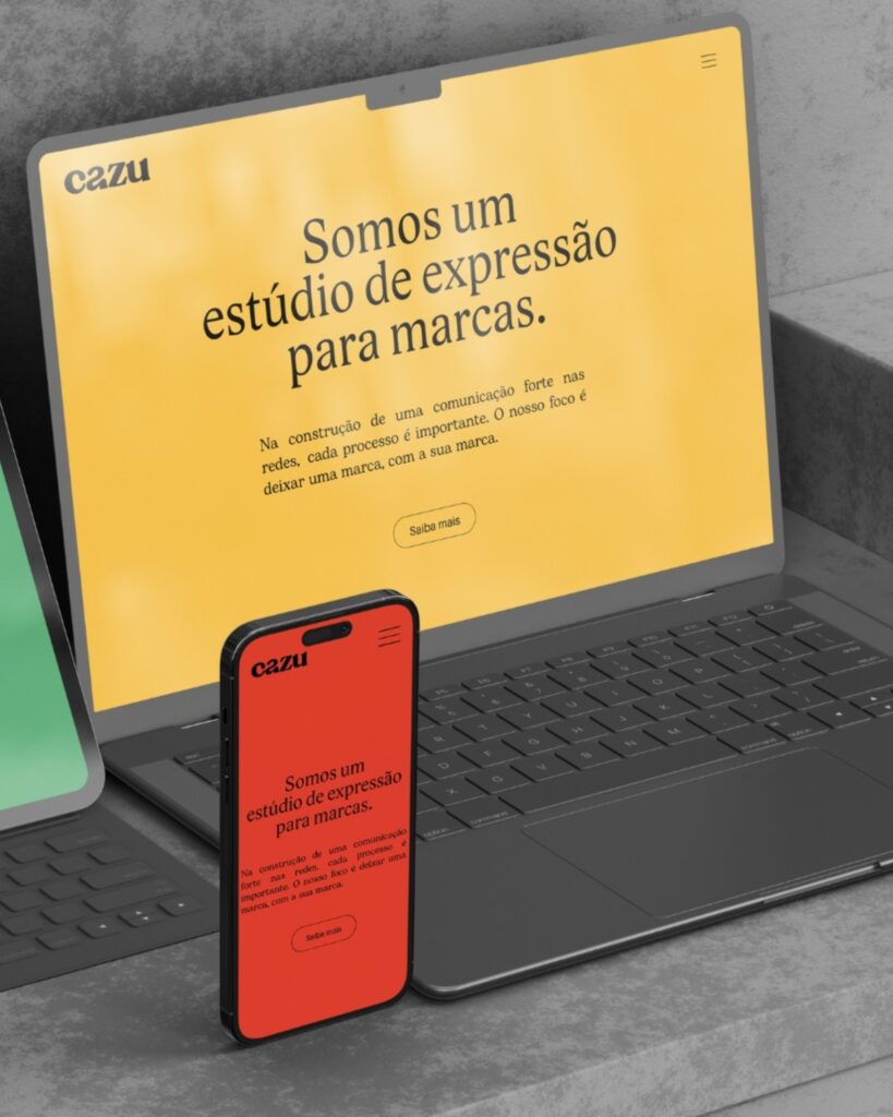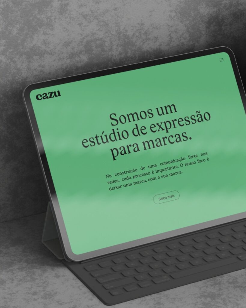 A navegação, a tipografia e o ritmo visual foram definidos para reforçar o posicionamento do Cazu como um estúdio que trabalha com autenticidade, cuidado estético e repertório visual. O resultado é uma plataforma viva, que serve como vitrine de portfólio e extensão natural da identidade do estúdio.